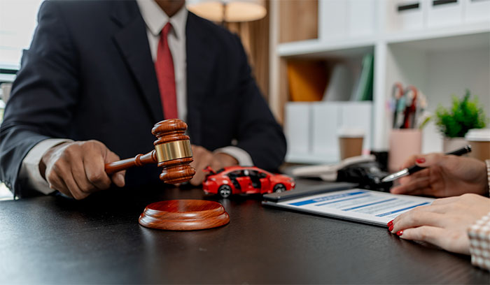 نقدم لمعتمدينا خدمات التمثيل القانوني أمام المحاكم/شركات التأمين/أصحاب العمل وذلك فيما يتعلق بالاصابات الناتجة عن الحوادث المشمولة بعقود التأمين والحوادث الناتجة عن اصابات العمل ، مع التركيز على التحصيل الأعلى قيمة للمعتمد دون اغفال عامل الوقت الذي لا يقل أهمية عن القيمة المالية ، وذلك ضمن تسلسل مخطط له مسبقاً كالاتي :